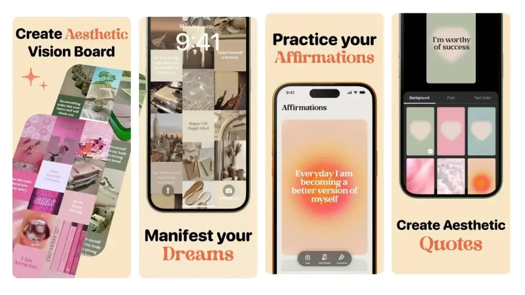 Vision Board Aesthetic in app screens